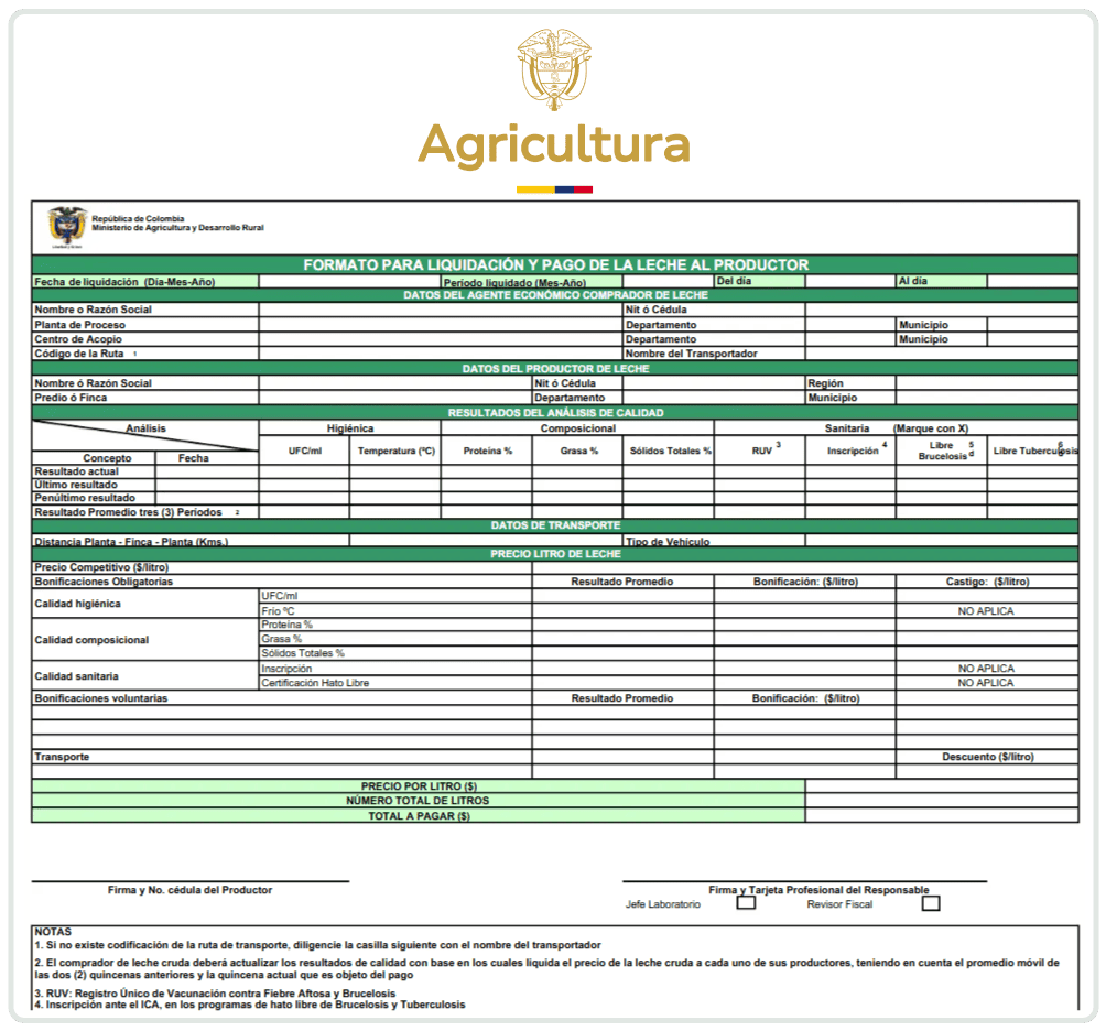 Liquide y genera automáticamente los formatos exigidos por el Ministerio de Agricultura y demás autoridades competentes.